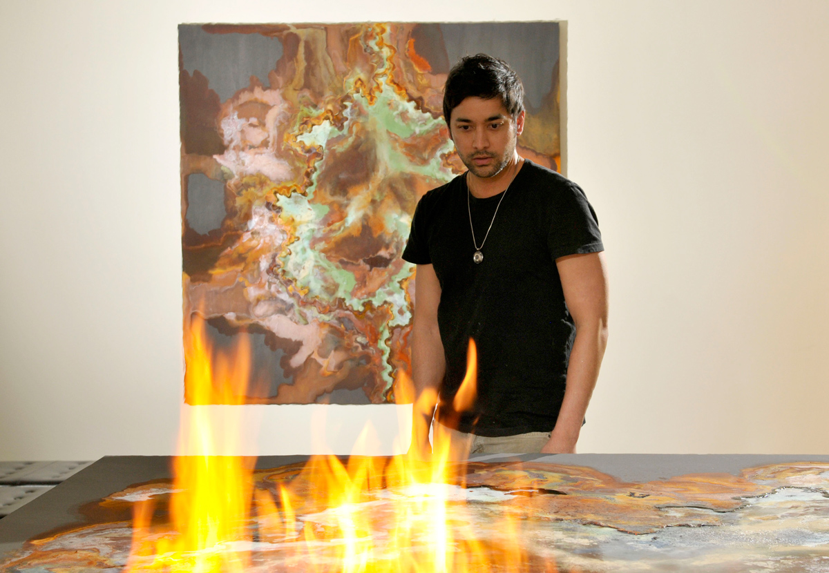 Mineral, fire, Holy water, San Francisco Bay water, panel, 84 x 84 inches