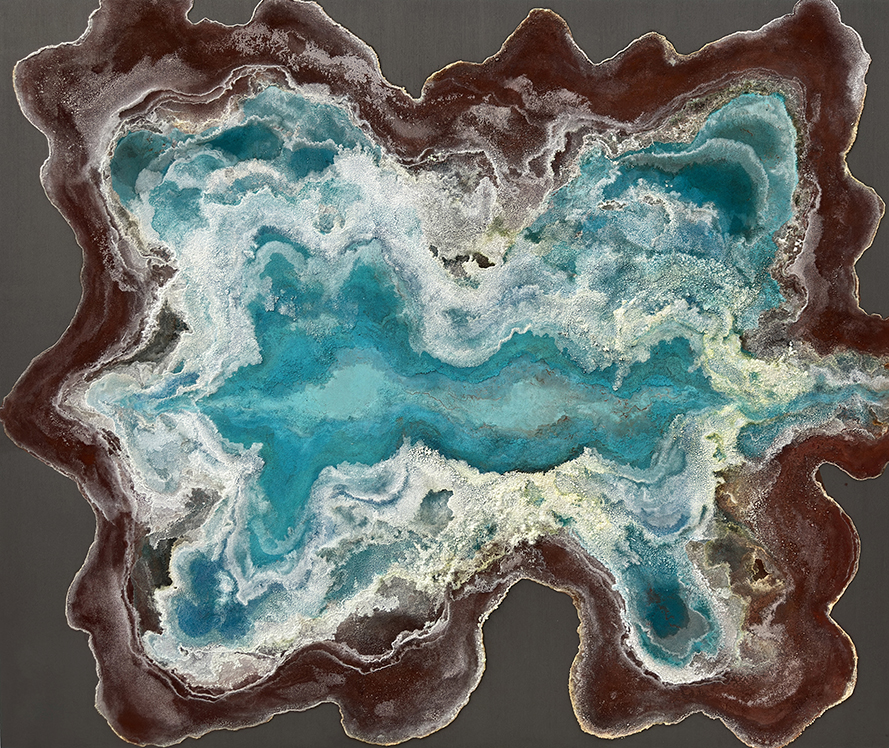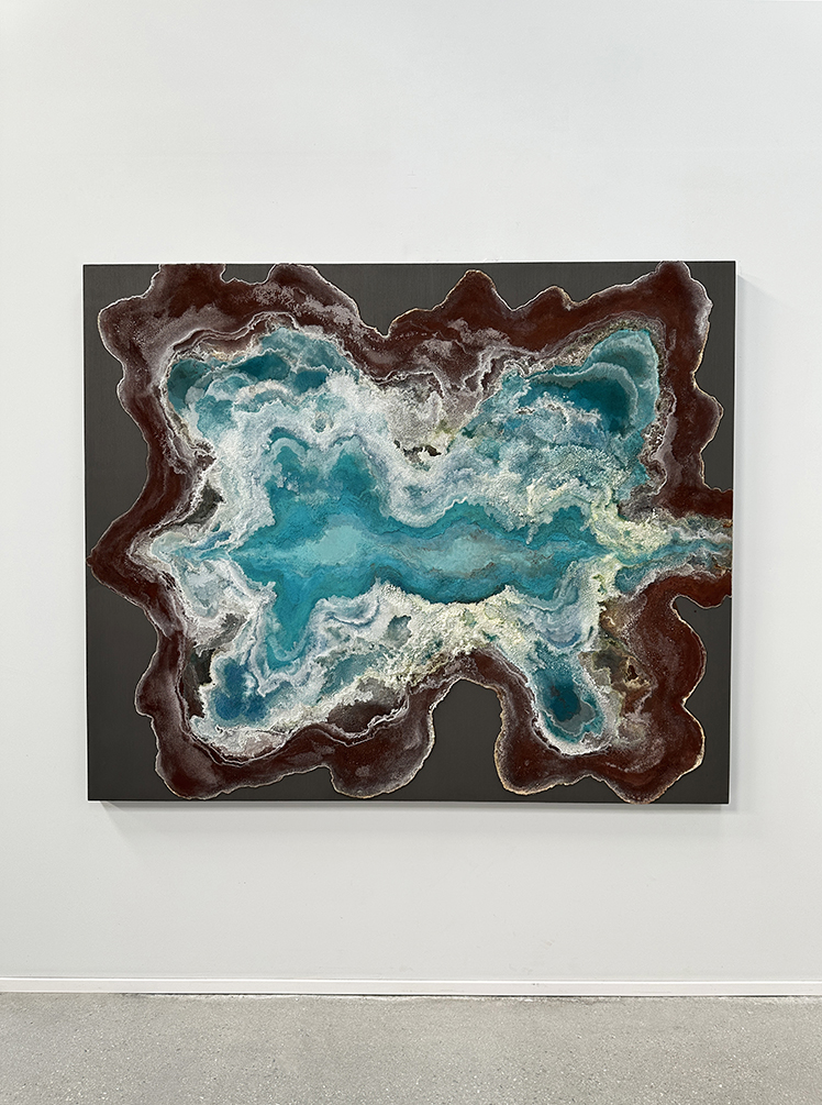 , Amboy salt, water, fire, mineral on panel, 60x72," 202