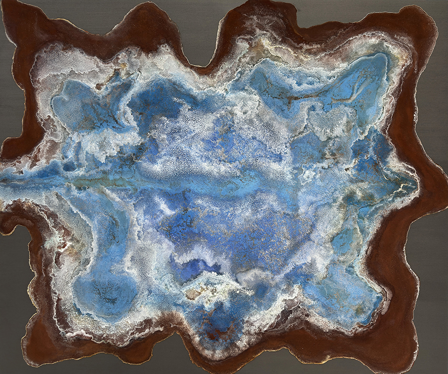 , Amboy salt, water, fire, mineral on panel, 60x72," 2026